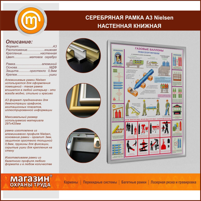 Багетная настенная рамка «Nielsen» А3 формата, книжная, матовое серебро в Пушкино купить