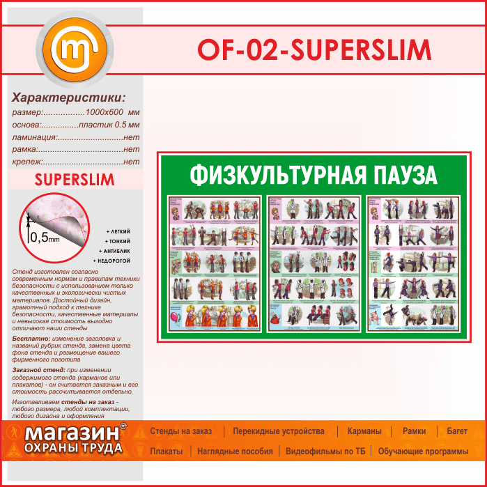 Стенд «Физкультурная пауза» (OF-02-SUPERSLIM) в Пушкино купить