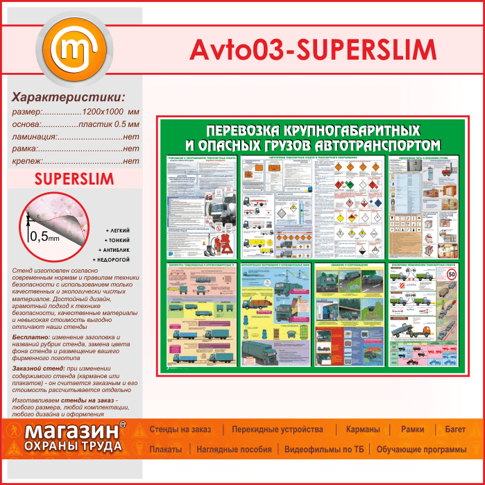 Стенд «Перевозка крупногабаритных и опасных грузов автотранспортом» (AV-03-SUPERSLIM) в Пушкино купить