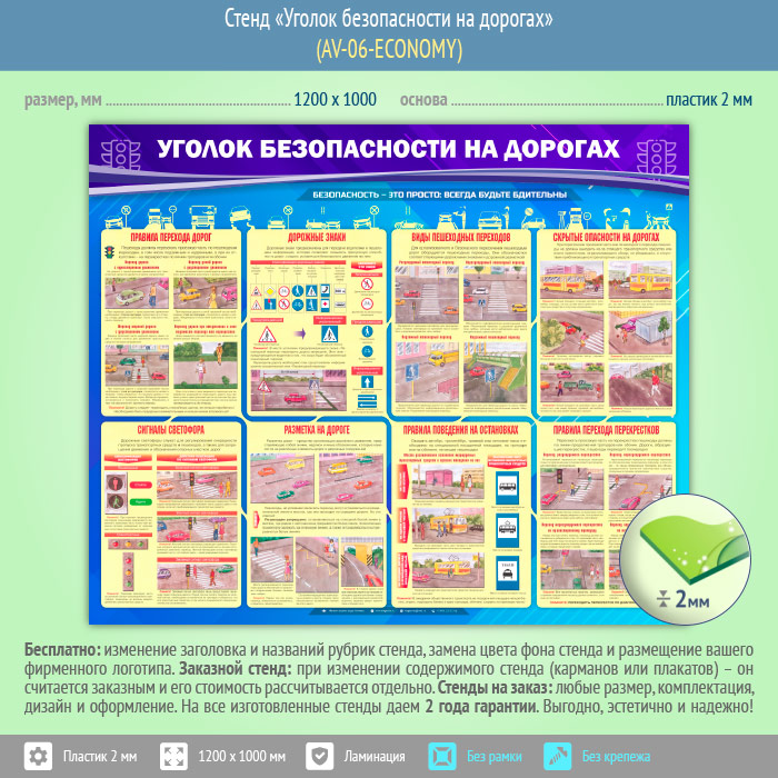 Стенд «Уголок безопасности на дорогах» (AV-06-ECONOMY) в Пушкино купить