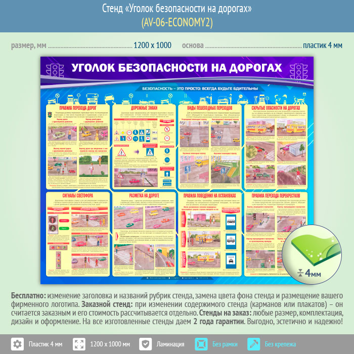 Стенд «Уголок безопасности на дорогах» (AV-06-ECONOMY2) в Пушкино купить