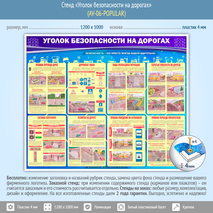 Стенд «Уголок безопасности на дорогах» (AV-06-POPULAR) в Пушкино купить