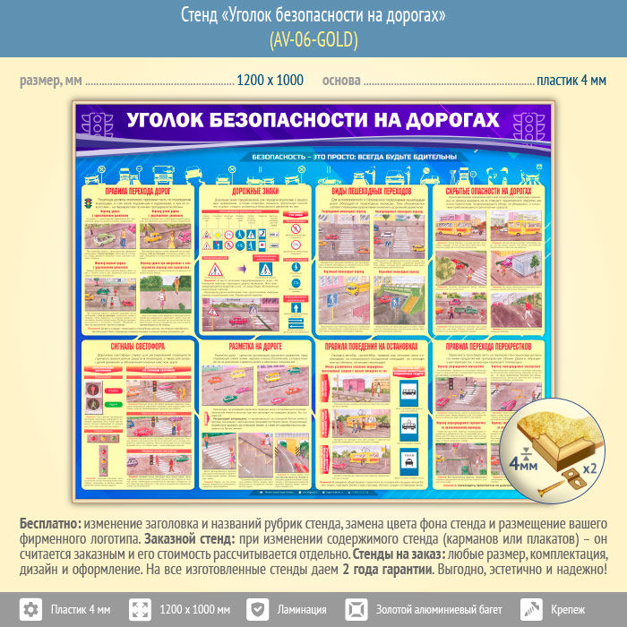 Стенд «Уголок безопасности на дорогах» (AV-06-GOLD) в Пушкино купить