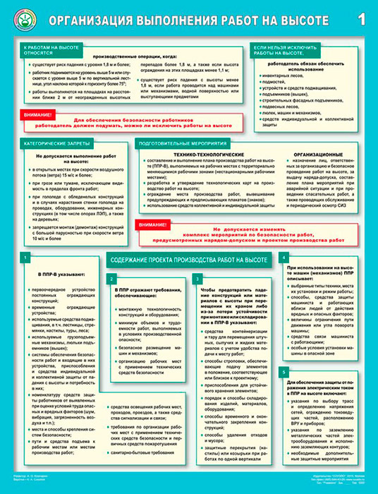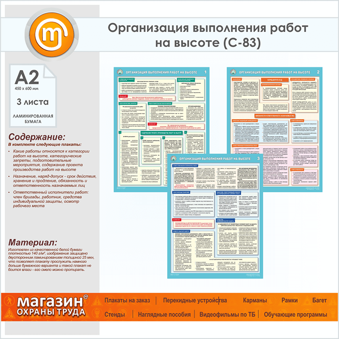 Плакаты «Организация выполнения работ на высоте» (С-83, ламинированная бумага, А2, 3 листа) в Пушкино купить