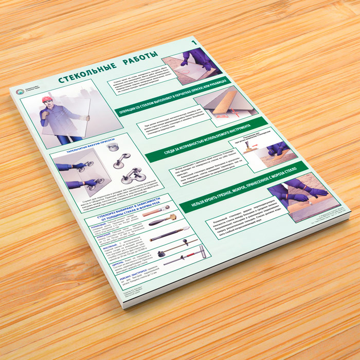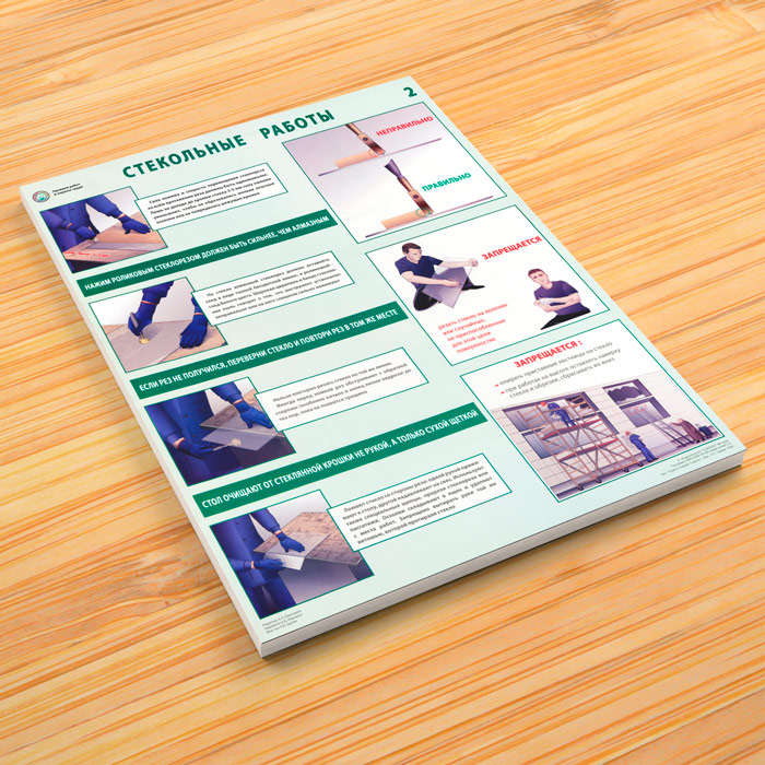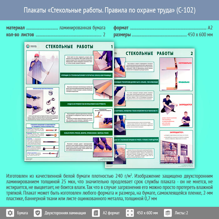 Плакаты «Стекольные работы. Правила по охране труда» (С-102, ламинированная бумага, А2, 2 листа) в Пушкино купить