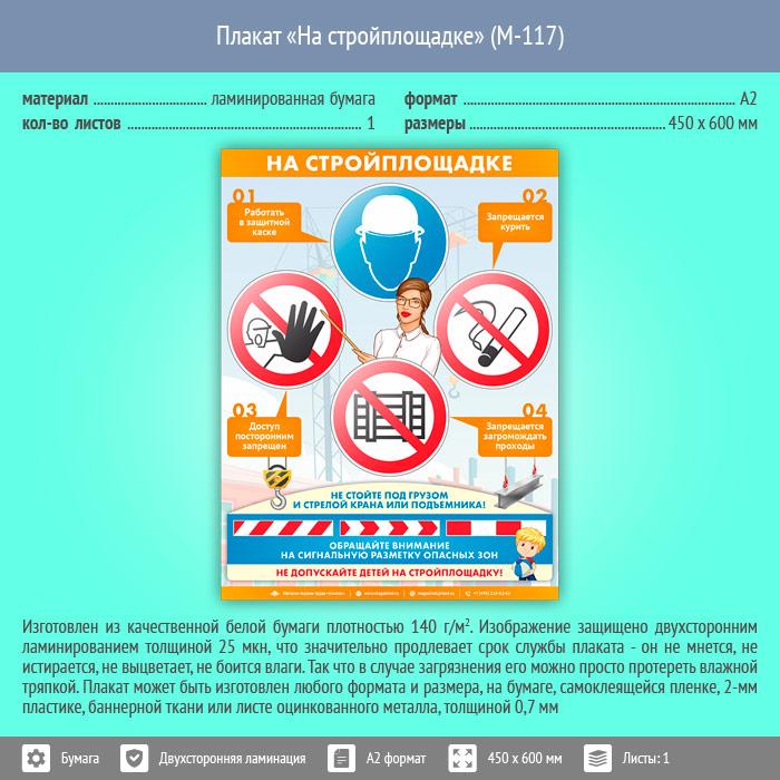 Плакат «На стройплощадке» (М-117, ламинированная бумага, А2, 1 лист) в Пушкино купить
