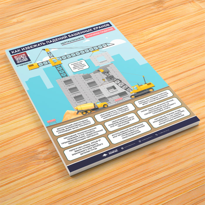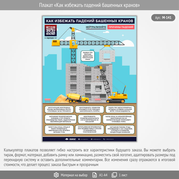 Плакат «Как избежать падений башенных кранов» с QR (М-141, 1 лист) в Пушкино купить