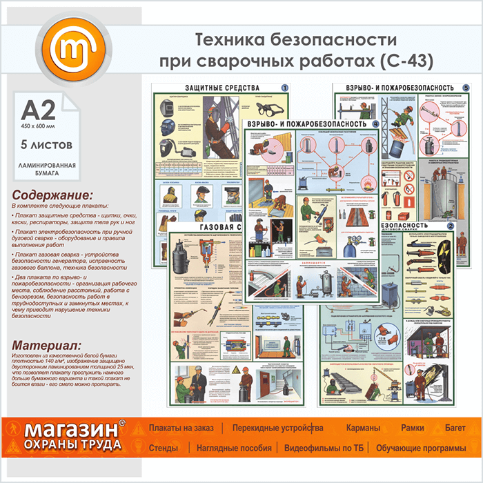 Плакаты «Техника безопасности при сварочных работах» (С-43, ламинированная бумага, А2, 5 листов) в Пушкино купить