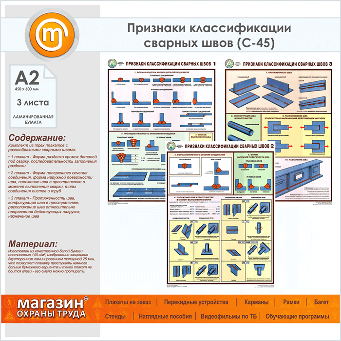 Плакаты «Признаки классификации сварных швов» (С-45, ламинированная бумага, А2, 3 листа) в Пушкино купить
