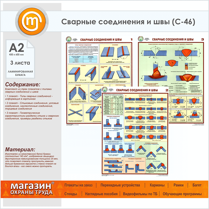 Плакаты «Сварные соединения и швы» (С-46, ламинированная бумага, А2, 3 листа) в Пушкино купить