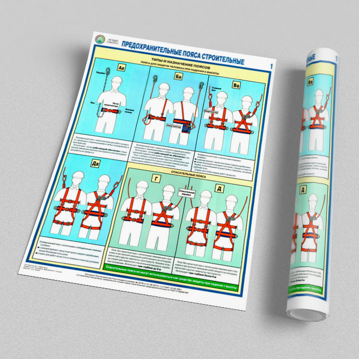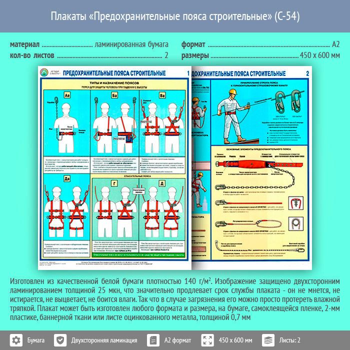 Плакаты «Предохранительные пояса строительные» (С-54, ламинированная бумага, А2, 2 листа) в Пушкино купить