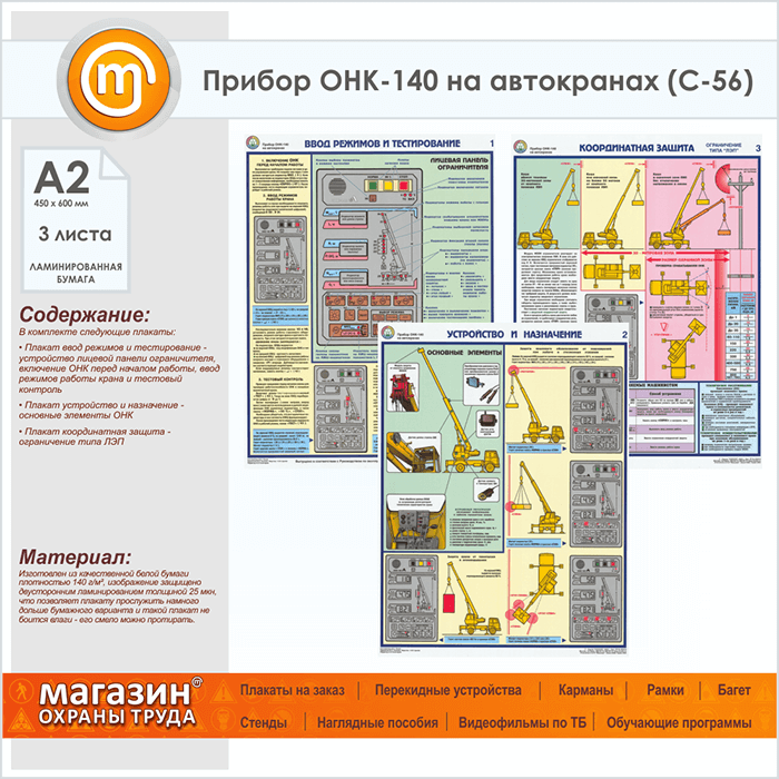 Плакаты «Прибор ОНК-140 на автокранах» (С-56, ламинированная бумага, А2, 3 листа) в Пушкино купить