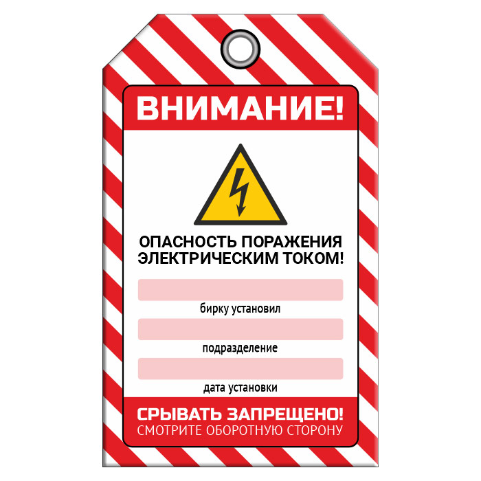 Бирка «ОПАСНОСТЬ ПОРАЖЕНИЯ ТОКОМ» (1 шт., двусторонняя, пластик, 70х115 мм) в Пушкино купить