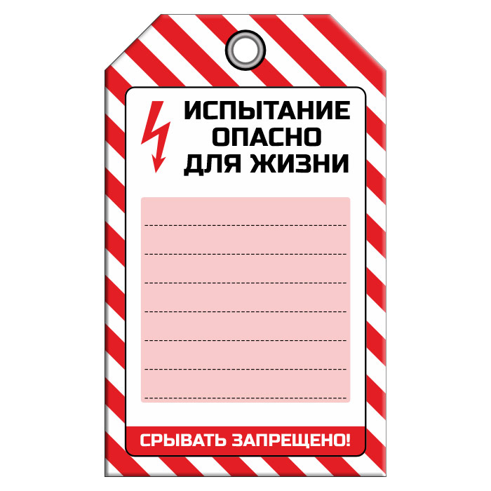 Бирка «ИСПЫТАНИЕ ОПАСНО ДЛЯ ЖИЗНИ» (1 шт., односторонняя, пластик, 70х115 мм) в Пушкино купить
