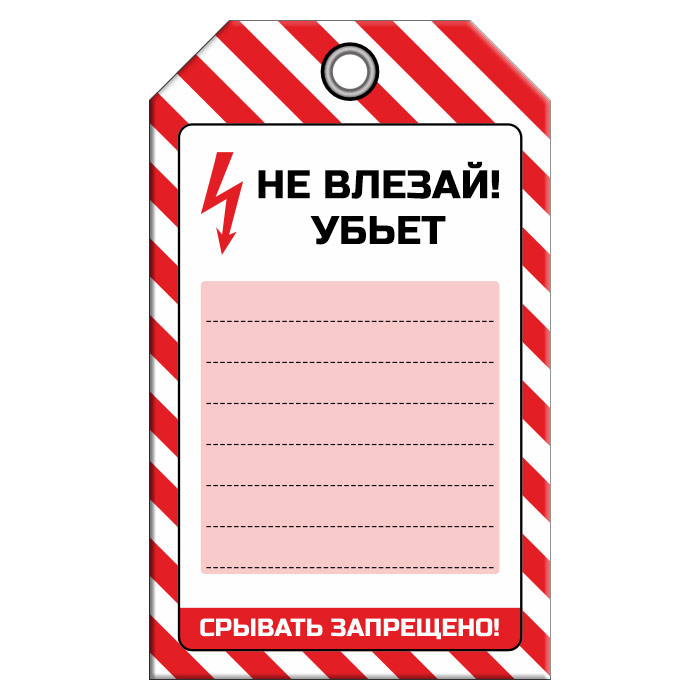 Бирка «НЕ ВЛЕЗАЙ! УБЪЕТ» (1 шт., односторонняя, пластик, 70х115 мм) в Пушкино купить