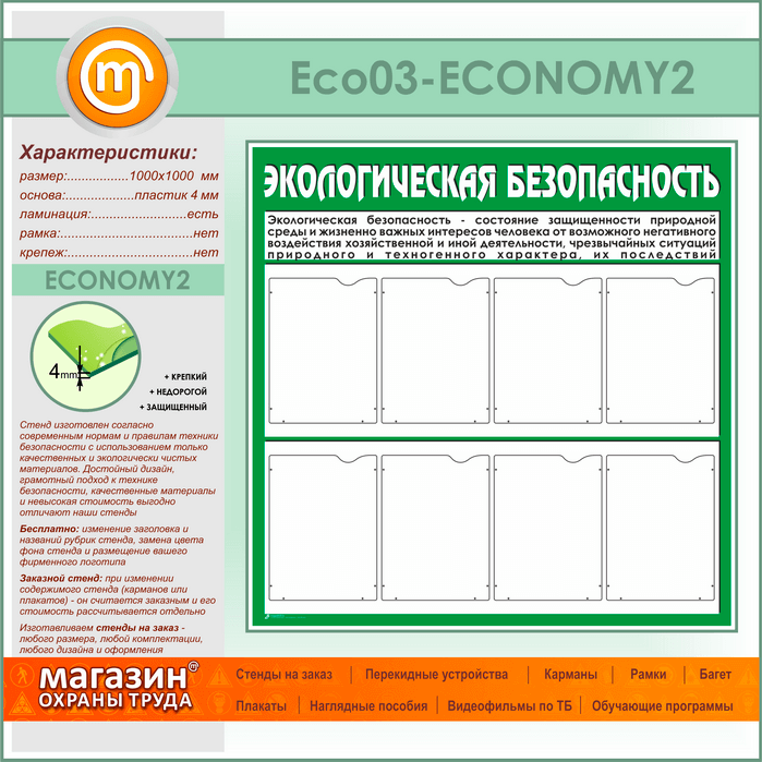 Стенд «Экологическая безопасность» с 8 карманами (ECO-03-ECONOMY2) в Пушкино купить
