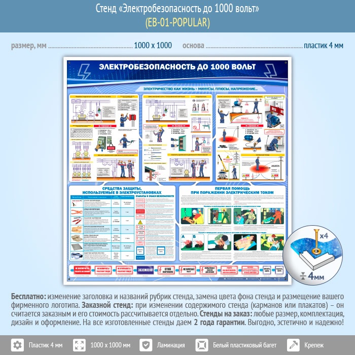 Стенд «Электробезопасность до 1000 вольт» (EB-01-POPULAR) в Пушкино купить