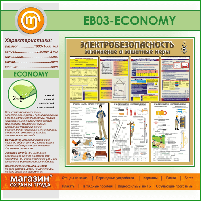 Стенд «Электробезопасность. Заземление и защитные меры» (EB-03-ECONOMY) в Пушкино купить