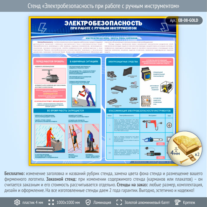 Стенд «Электробезопасность при работе с ручным инструментом» (EB-08-GOLD) в Пушкино купить