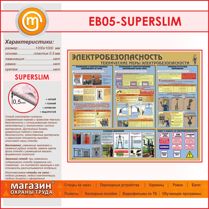 Стенд «Электробезопасность. Технические меры электробезопасности» (EB-05-SUPERSLIM) в Пушкино купить