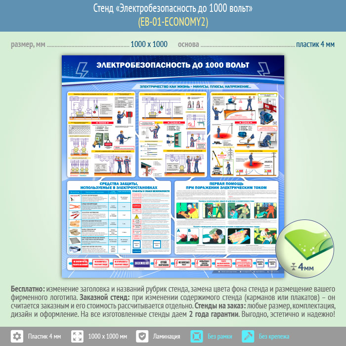 Стенд «Электробезопасность до 1000 вольт» (EB-01-ECONOMY2) в Пушкино купить