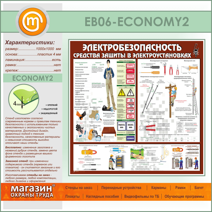 Стенд «Электробезопасность. Средства защиты в электроустановках» (EB-06-ECONOMY2) в Пушкино купить