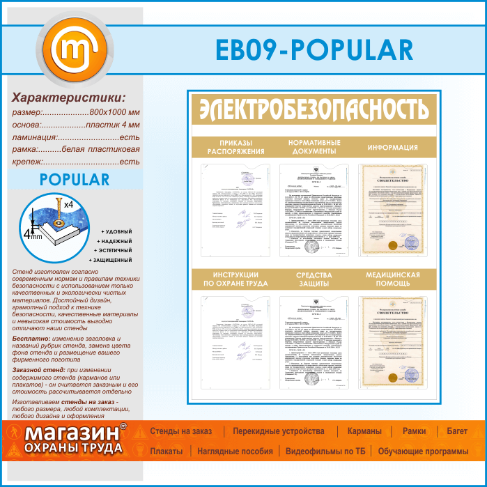 Стенд «Электробезопасность» с 6 карманами (EB-09-POPULAR) в Пушкино купить
