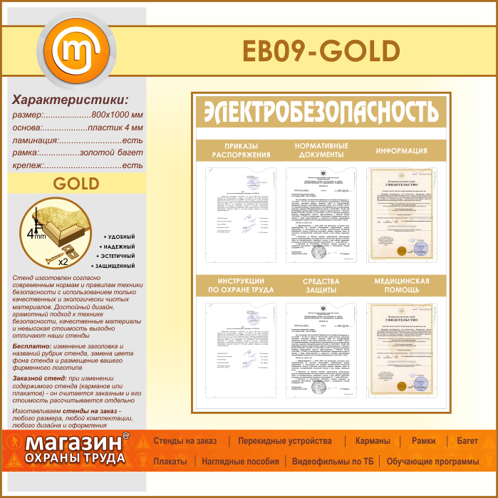 Стенд «Электробезопасность» с 6 карманами (EB-09-GOLD) в Пушкино купить