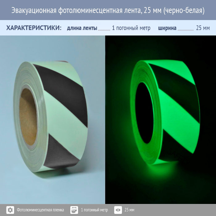 Эвакуационная фотолюминесцентная лента, 25 мм (черно-белая) в Пушкино купить