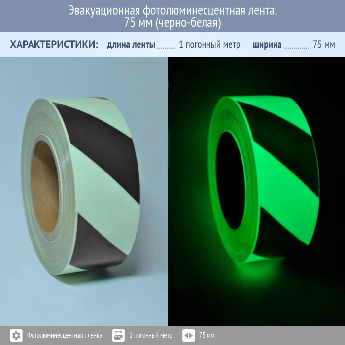 Эвакуационная фотолюминесцентная лента, 75 мм (черно-белая) в Пушкино купить