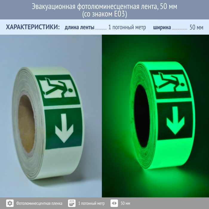 Эвакуационная фотолюминесцентная лента, 50 мм (со знаком E03) в Пушкино купить