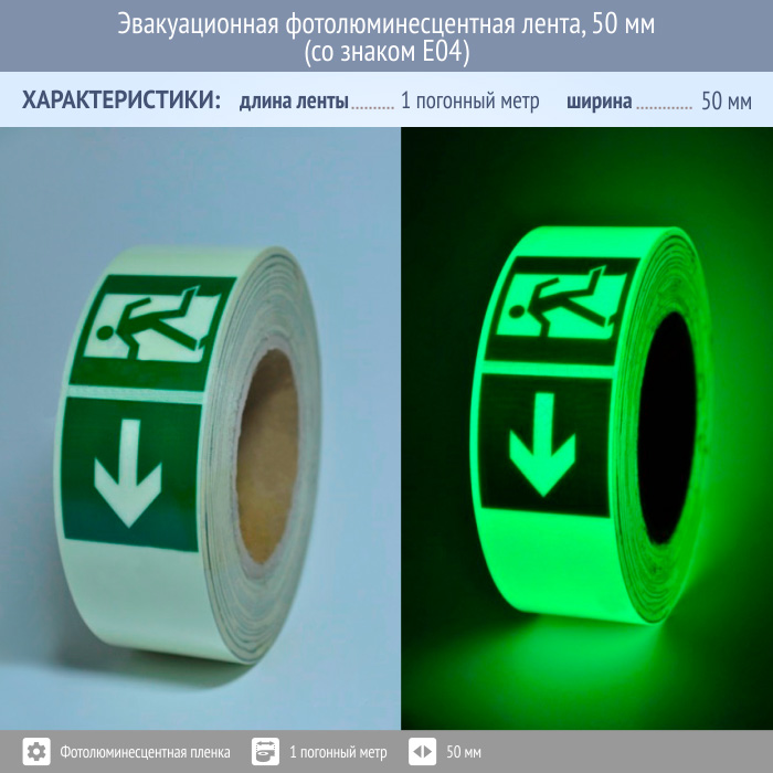 Эвакуационная фотолюминесцентная лента, 50 мм (со знаком E04) в Пушкино купить