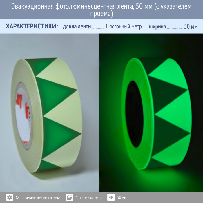Эвакуационная фотолюминесцентная лента, 50 мм (с указателем проема) в Пушкино купить