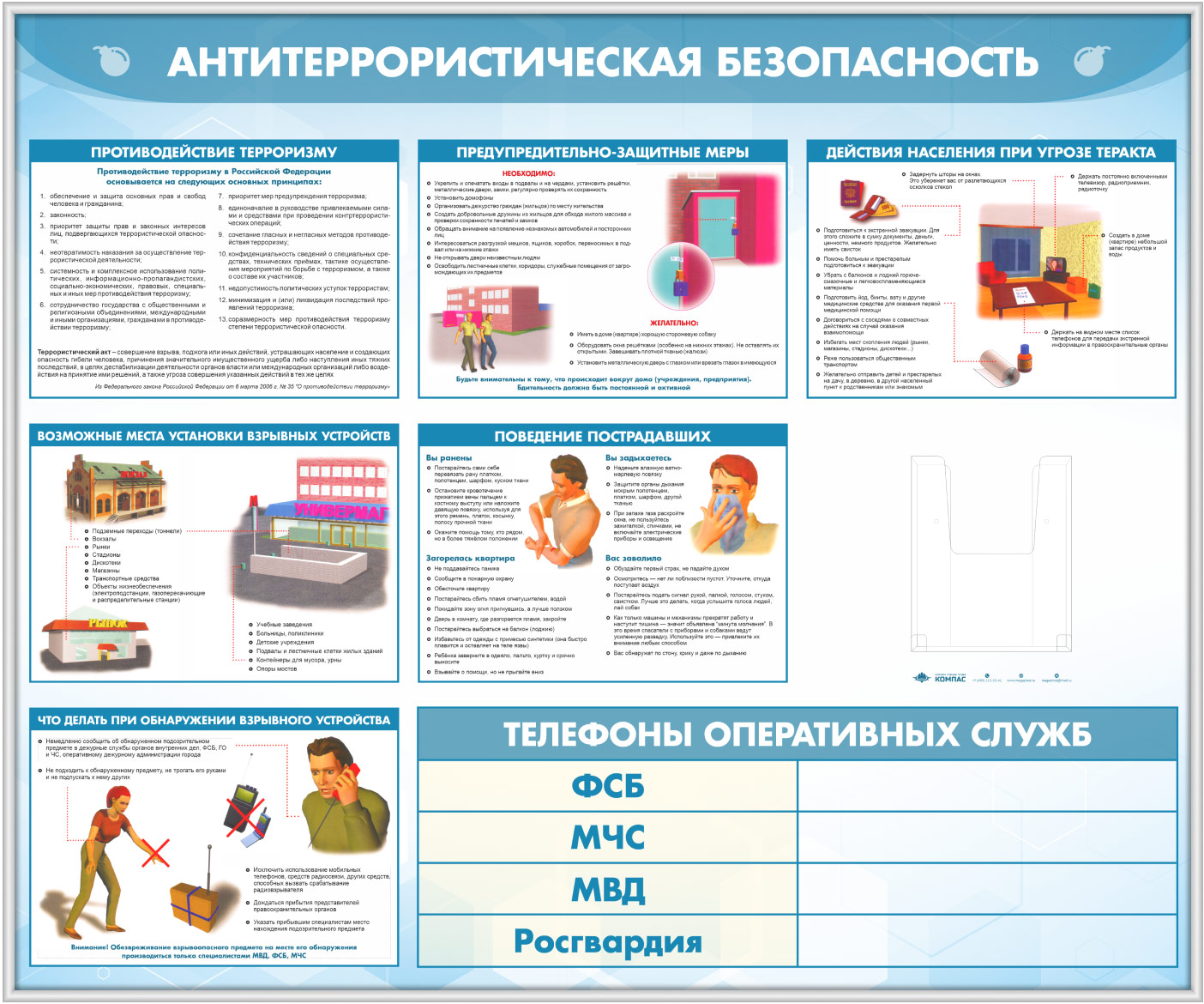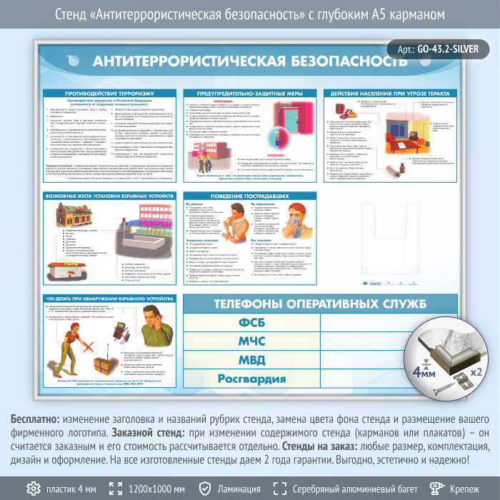 Стенд «Антитеррористическая безопасность» с глубоким А5 карманом (GO-43.2-SILVER) в Пушкино купить