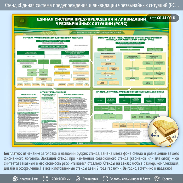Стенд «Единая система предупреждения и ликвидации чрезвычайных ситуаций (РСЧС)» (GO-44-GOLD) в Пушкино купить