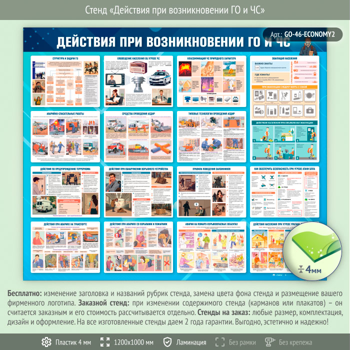 Стенд «Действия при возникновении ГО и ЧС» (GO-46-ECONOMY2) в Пушкино купить