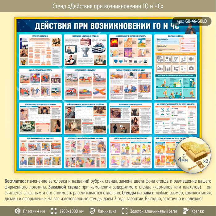 Стенд «Действия при возникновении ГО и ЧС» (GO-46-GOLD) в Пушкино купить