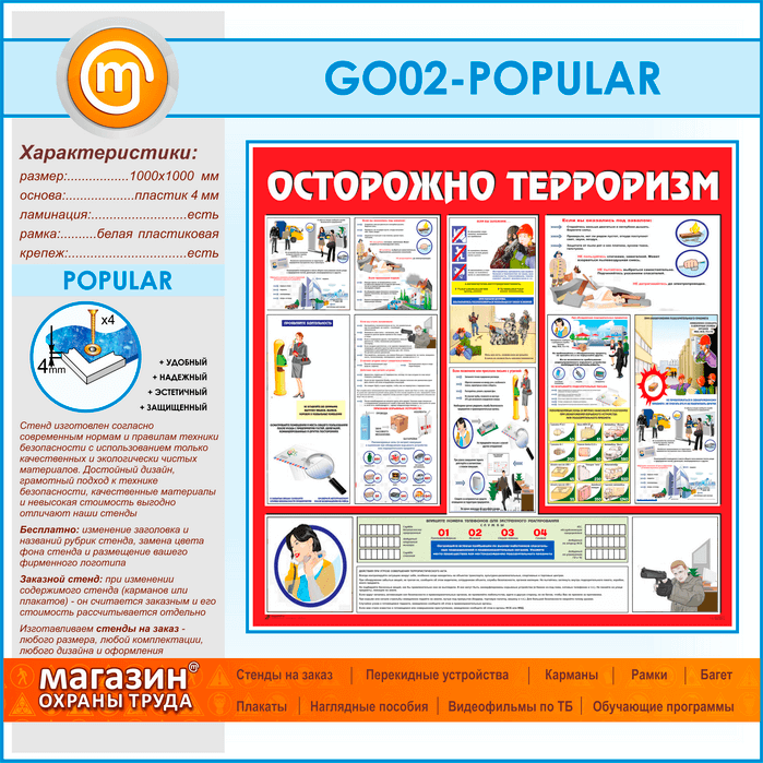 Стенд «Осторожно терроризм!» (GO-02-POPULAR) в Пушкино купить