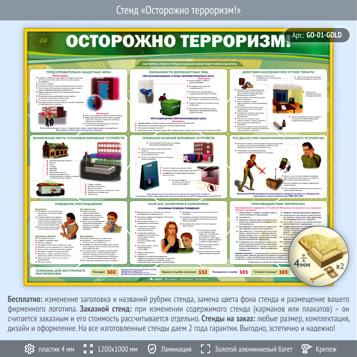 Стенд «Осторожно терроризм!» (GO-01-GOLD) в Пушкино купить