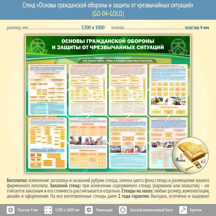 Стенд «Основы гражданской обороны и защиты от чрезвычайных ситуаций» (GO-04-GOLD) в Пушкино купить