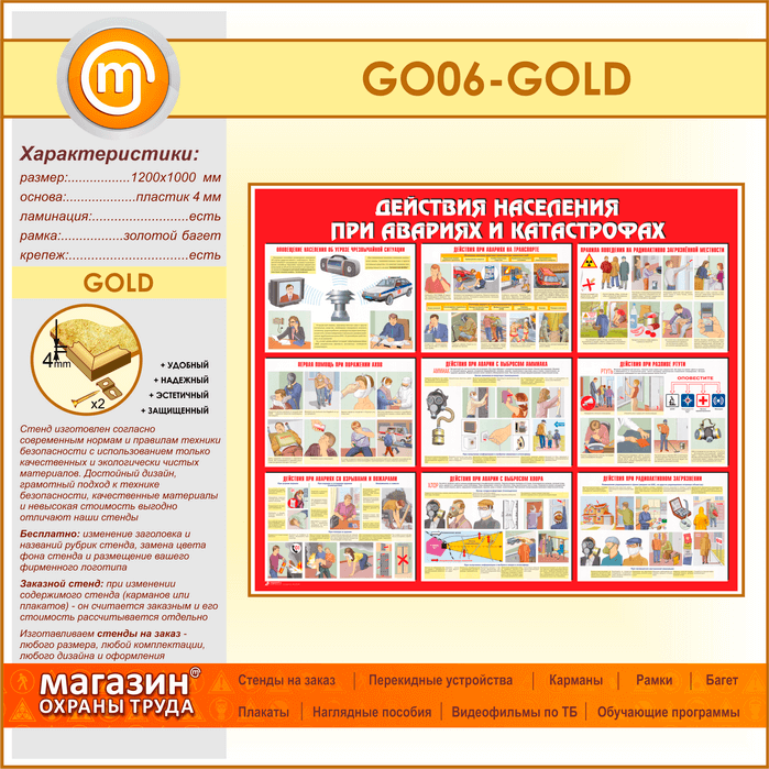 Стенд «Действия населения при авариях и катастрофах» (GO-06-GOLD) в Пушкино купить