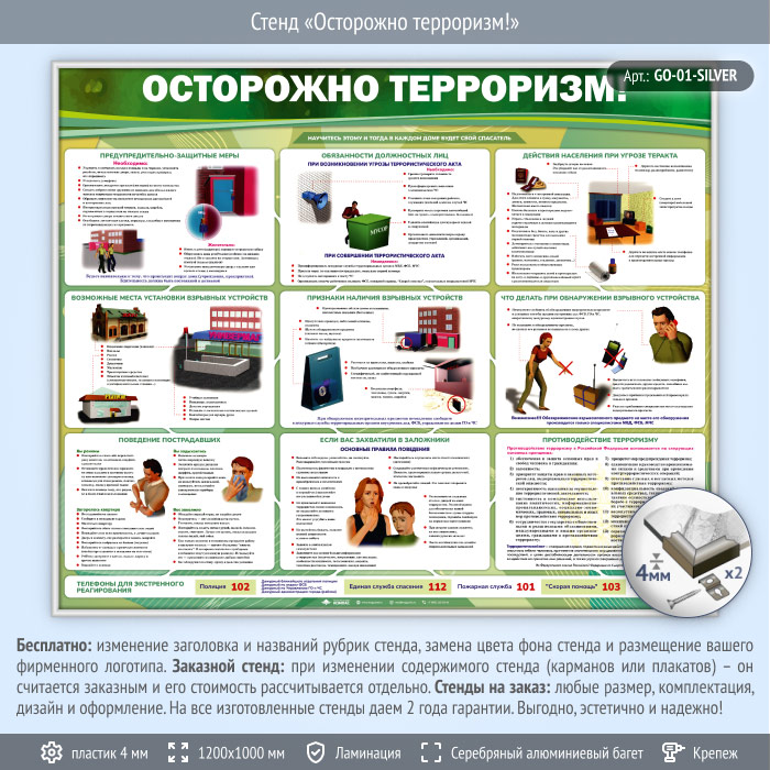 Стенд «Осторожно терроризм!» (GO-01-SILVER) в Пушкино купить