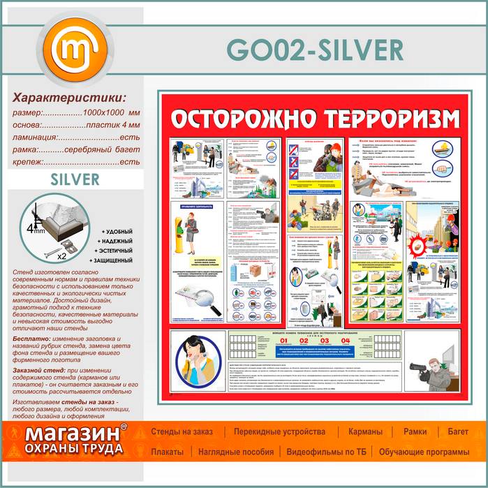 Стенд «Осторожно терроризм!» (GO-02-SILVER) в Пушкино купить