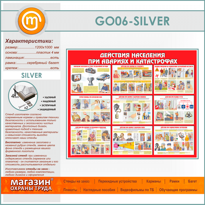 Стенд «Действия населения при авариях и катастрофах» (GO-06-SILVER) в Пушкино купить