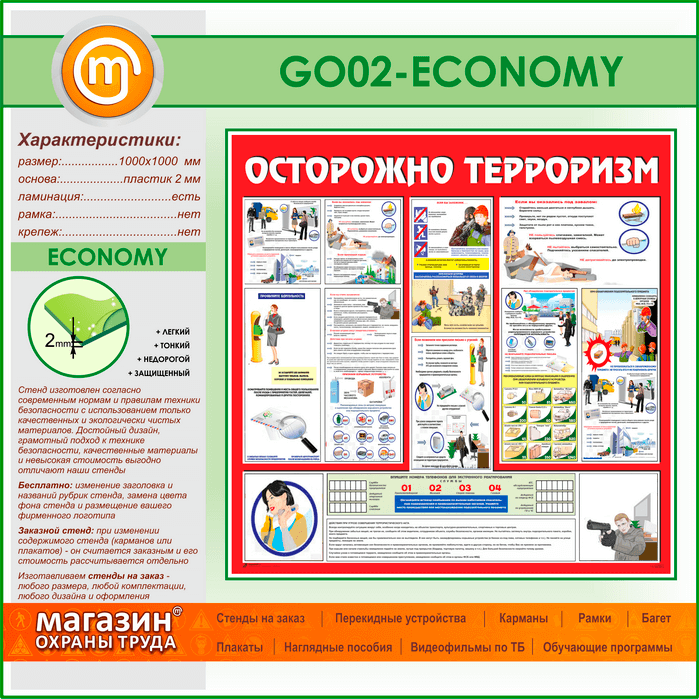 Стенд «Осторожно терроризм!» (GO-02-ECONOMY) в Пушкино купить