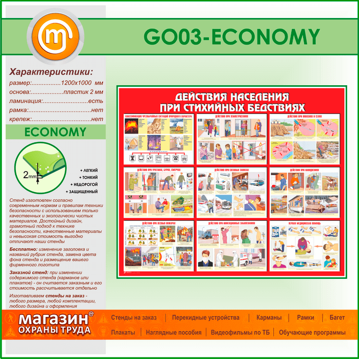 Стенд «Действия населения при стихийных бедствиях» (GO-03-ECONOMY) в Пушкино купить