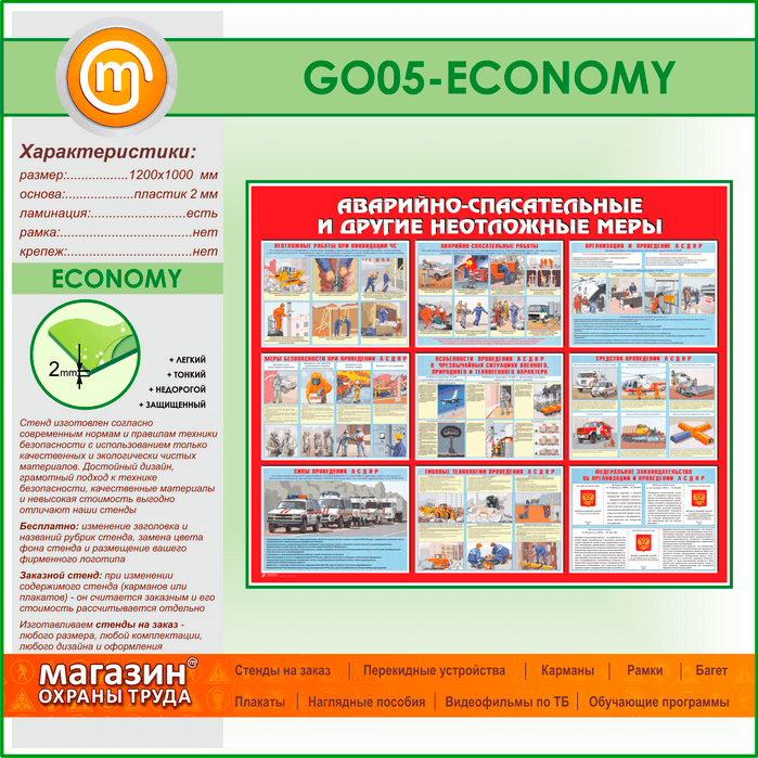 Стенд «Аварийно-спасательные и другие неотложные меры» (GO-05-ECONOMY) в Пушкино купить