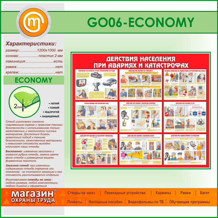 Стенд «Действия населения при авариях и катастрофах» (GO-06-ECONOMY) в Пушкино купить