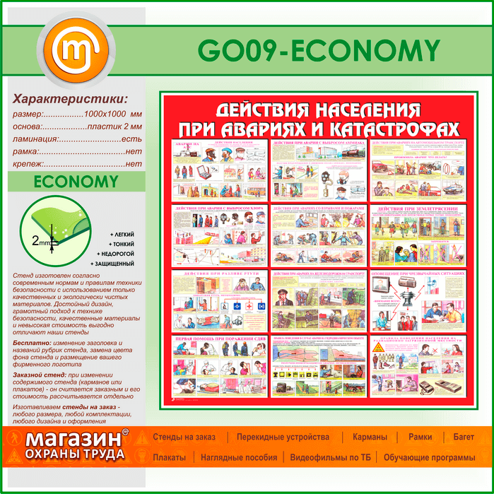 Стенд «Действия населения при авариях и катастрофах» (GO-09-ECONOMY) в Пушкино купить