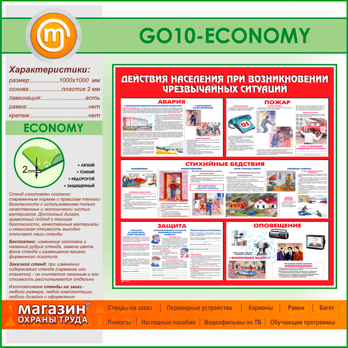 Стенд «Действия населения при возникновении чрезвычайных ситуаций» (GO-10-ECONOMY) в Пушкино купить